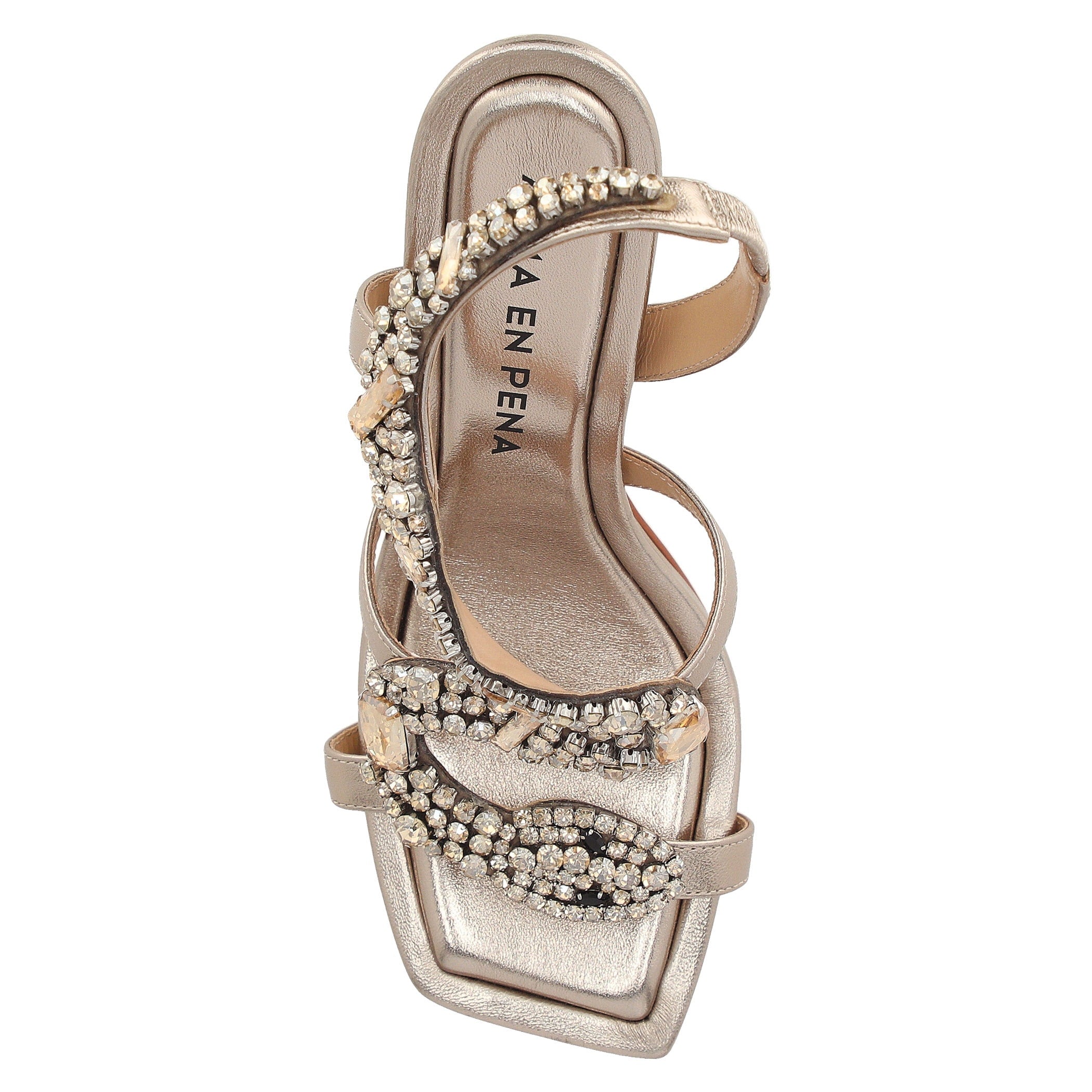 Estas sandalias Alma en Pena elaboradas en piel destacan por su diseño femenino y elegante. Con un tacón de 9 cm, aportan altura y presencia sin sacrificar comodidad. La aplicación de pedrería añade un brillo llamativo, mientras que la fijación elástica, la punta cuadrada, el estampado liso y la textura lisa completan un look perfecto para ocasiones especiales.