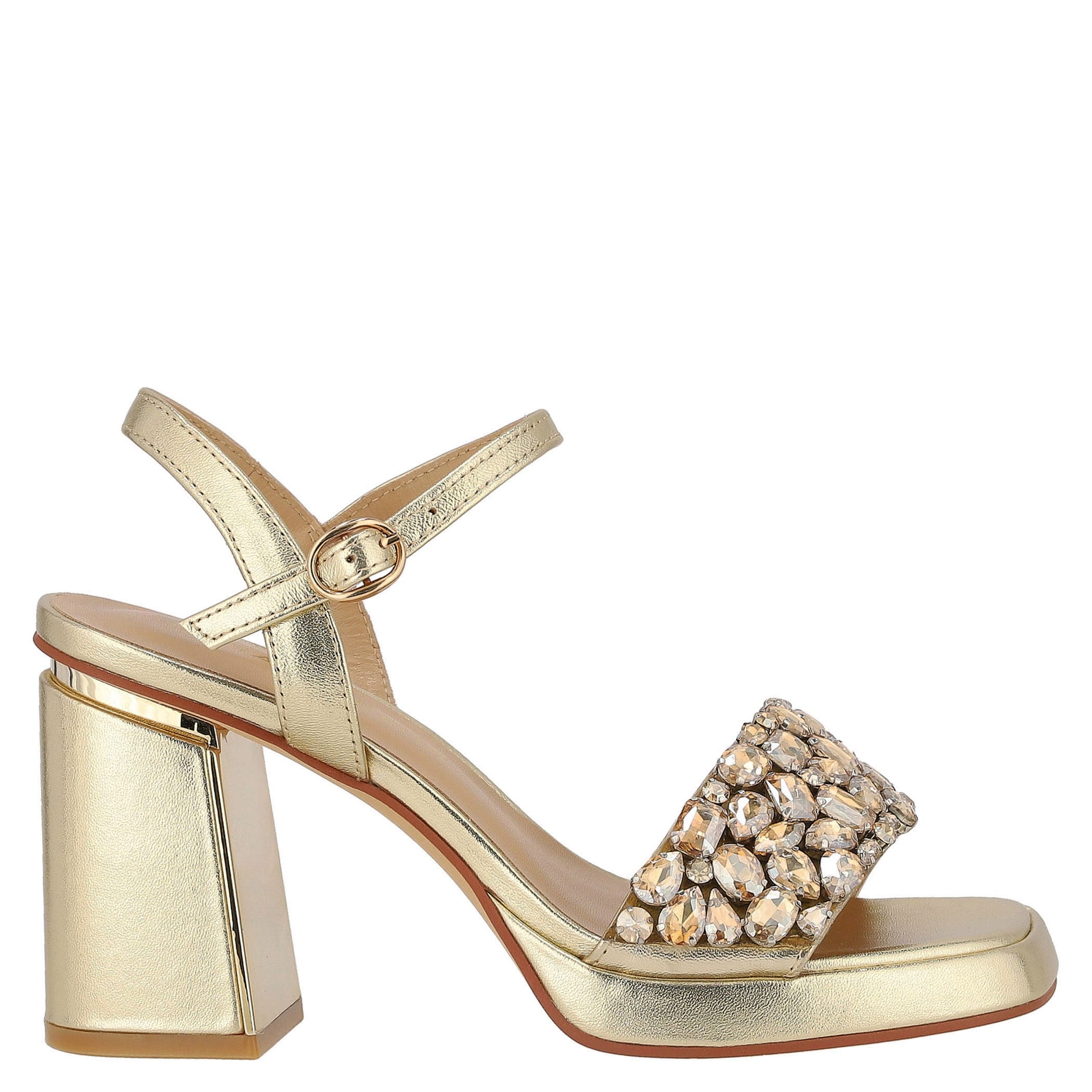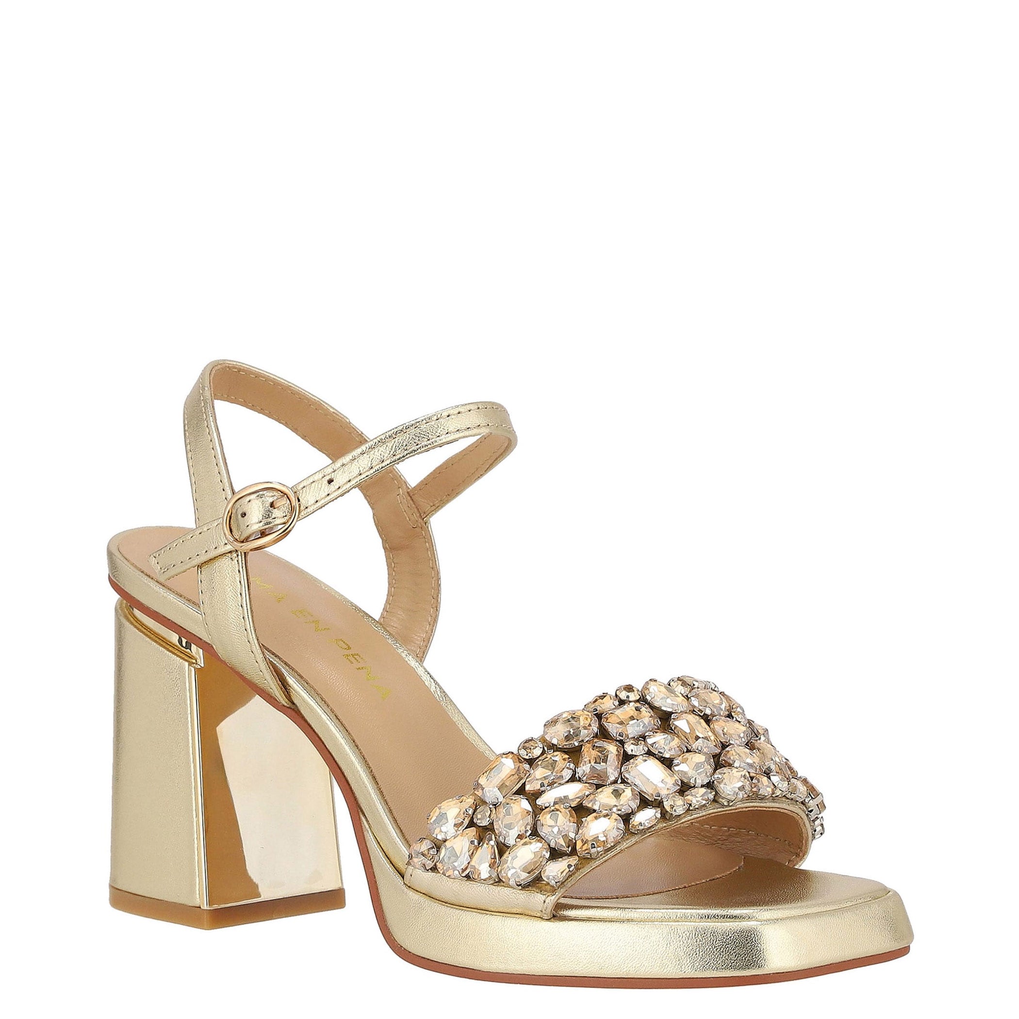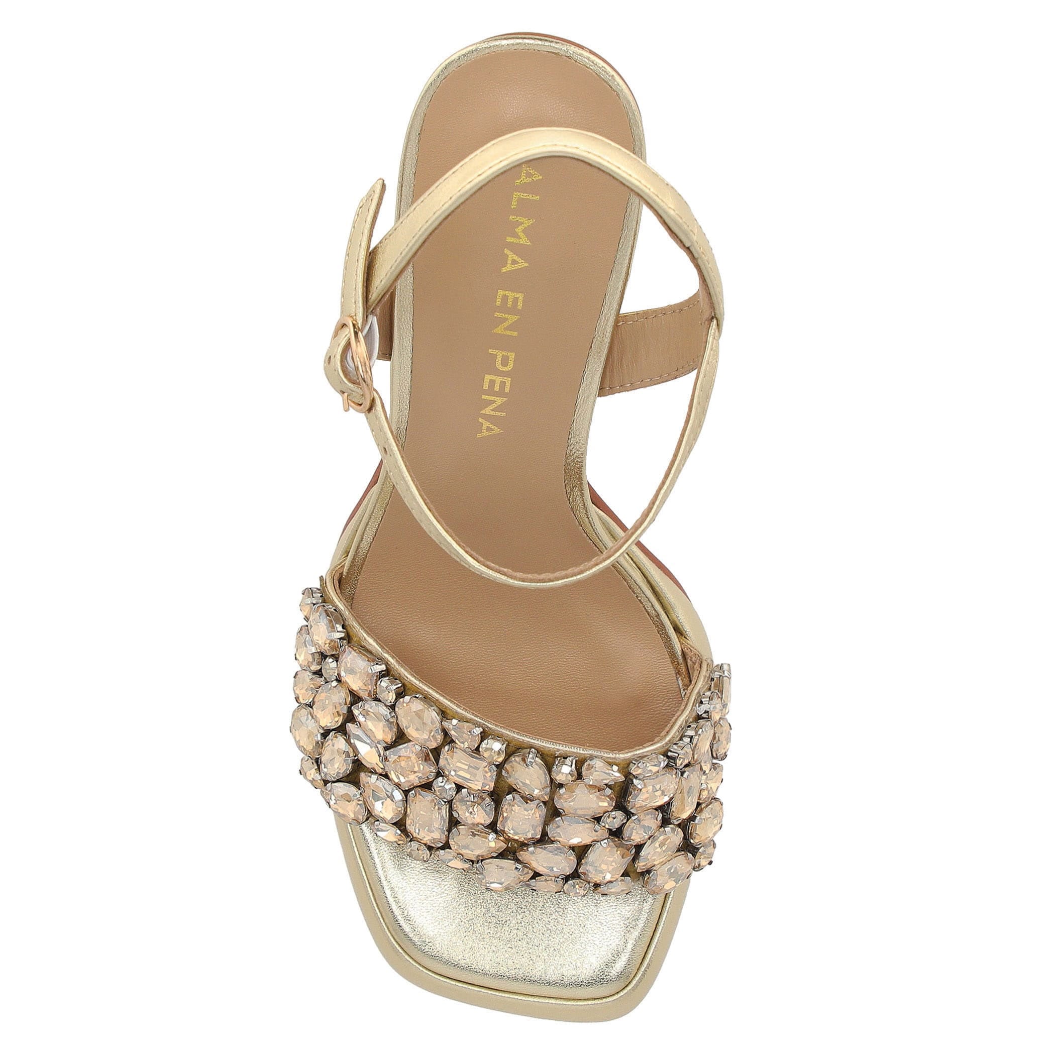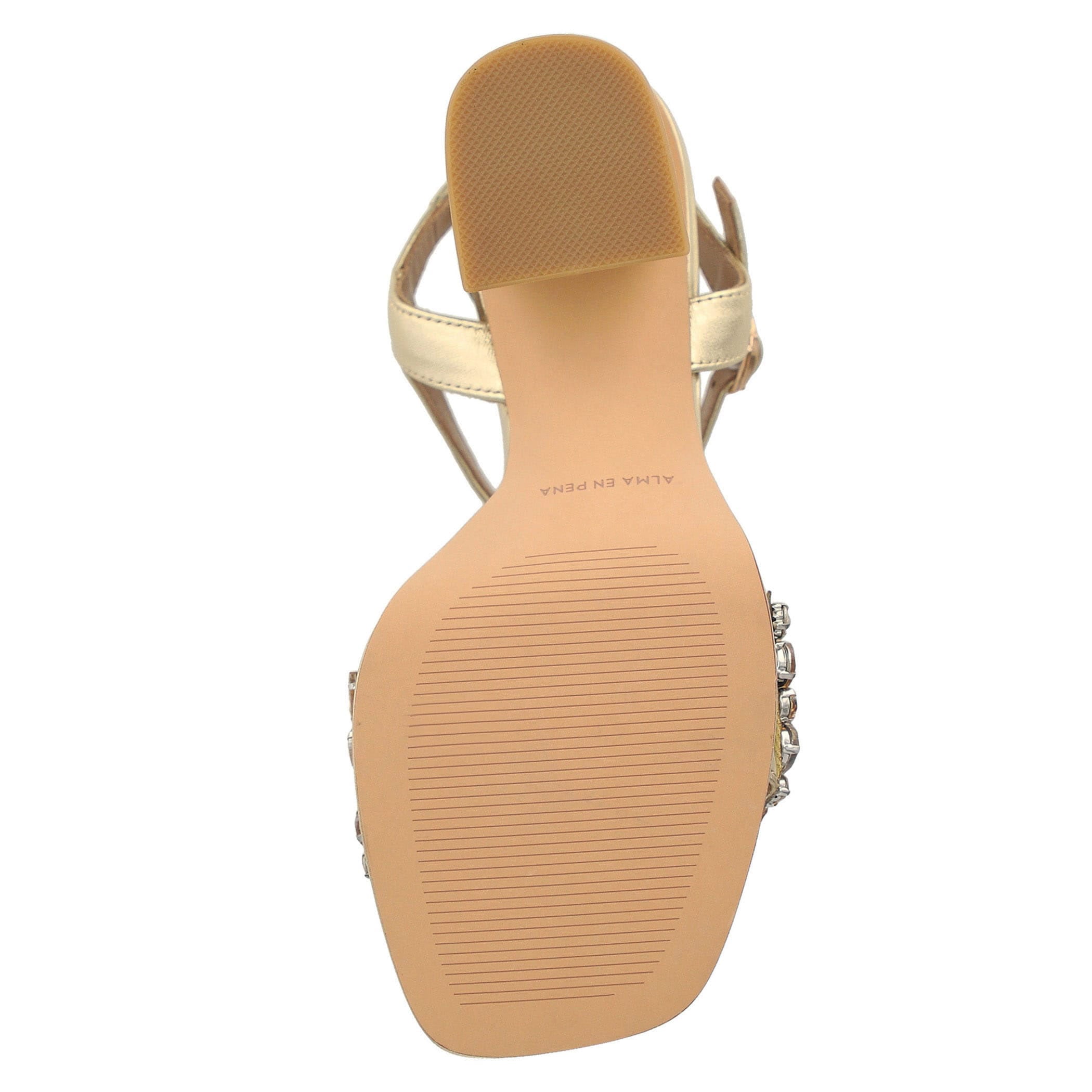 Estas sandalias Alma en Pena elaboradas en piel son ideales para lucir con elegancia en cualquier ocasión. Con un tacón de 10 cm, aportan una silueta estilizada. La aplicación de pedrería añade un toque de brillo femenino, mientras que la fijación con hebilla, la punta cuadrada, el estampado liso y la textura lisa completan un diseño moderno y sofisticado.