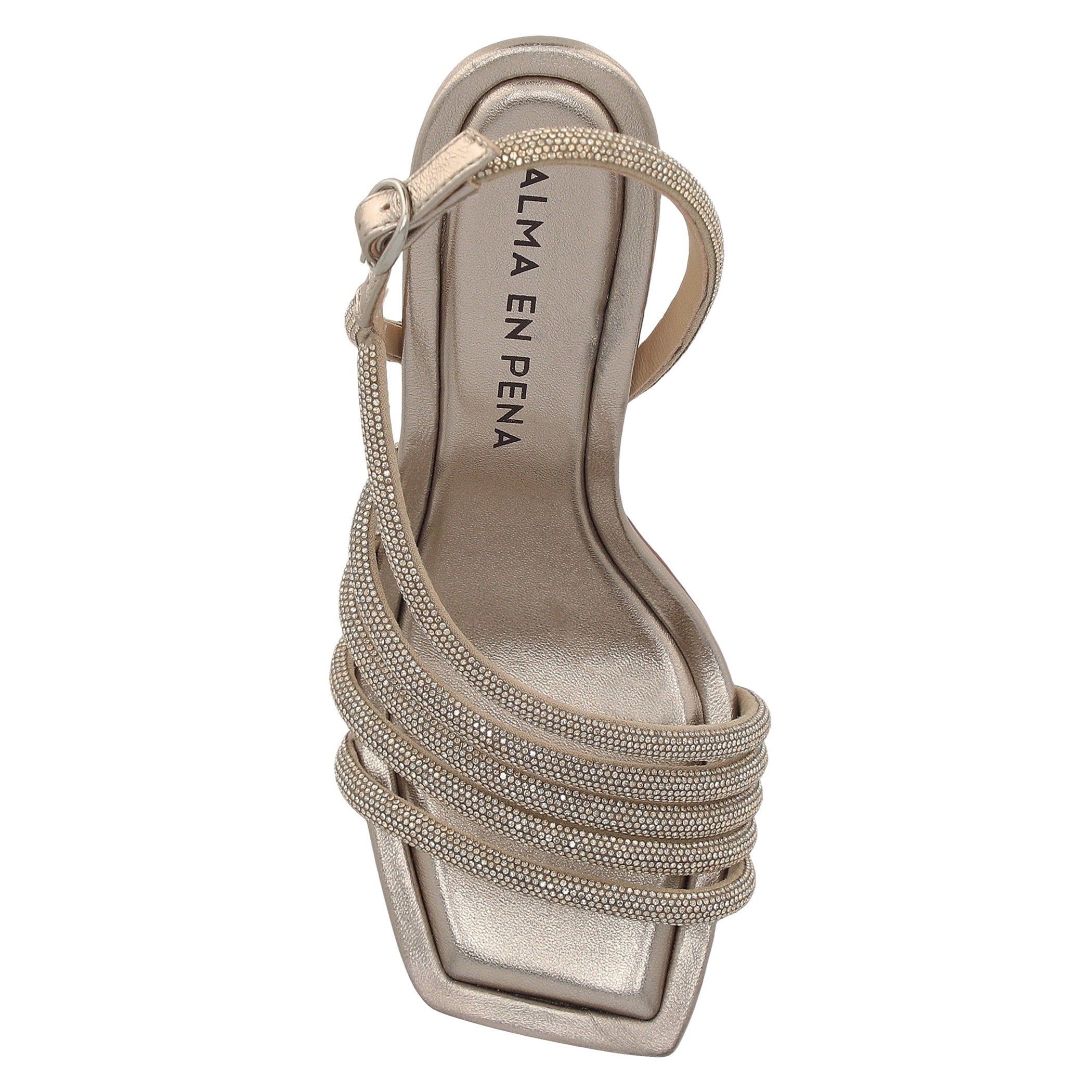 Esta sandalia Alma en Pena para mujer expresa una elegancia contemporánea con un diseño limpio y sofisticado. Elaborada en piel, se realza con una aplicación de pedrería delicada que aporta brillo sutil y refinado. La fijación con hebilla asegura un ajuste femenino y preciso, mientras que la punta cuadrada y el tacón de 10 cm estilizan la silueta con un efecto esbelto y moderno. Ideal para looks de noche o eventos especiales donde el detalle marca la diferencia.